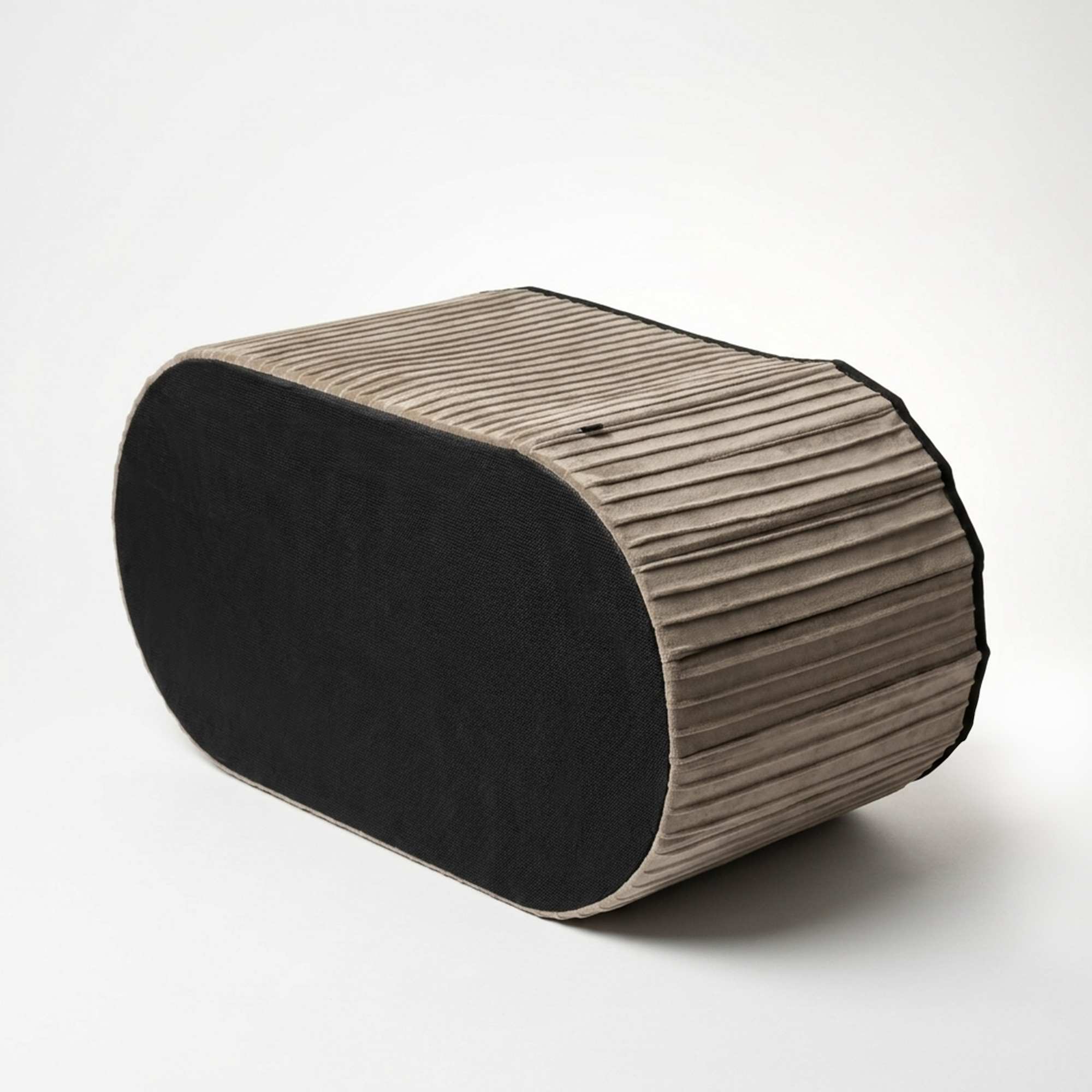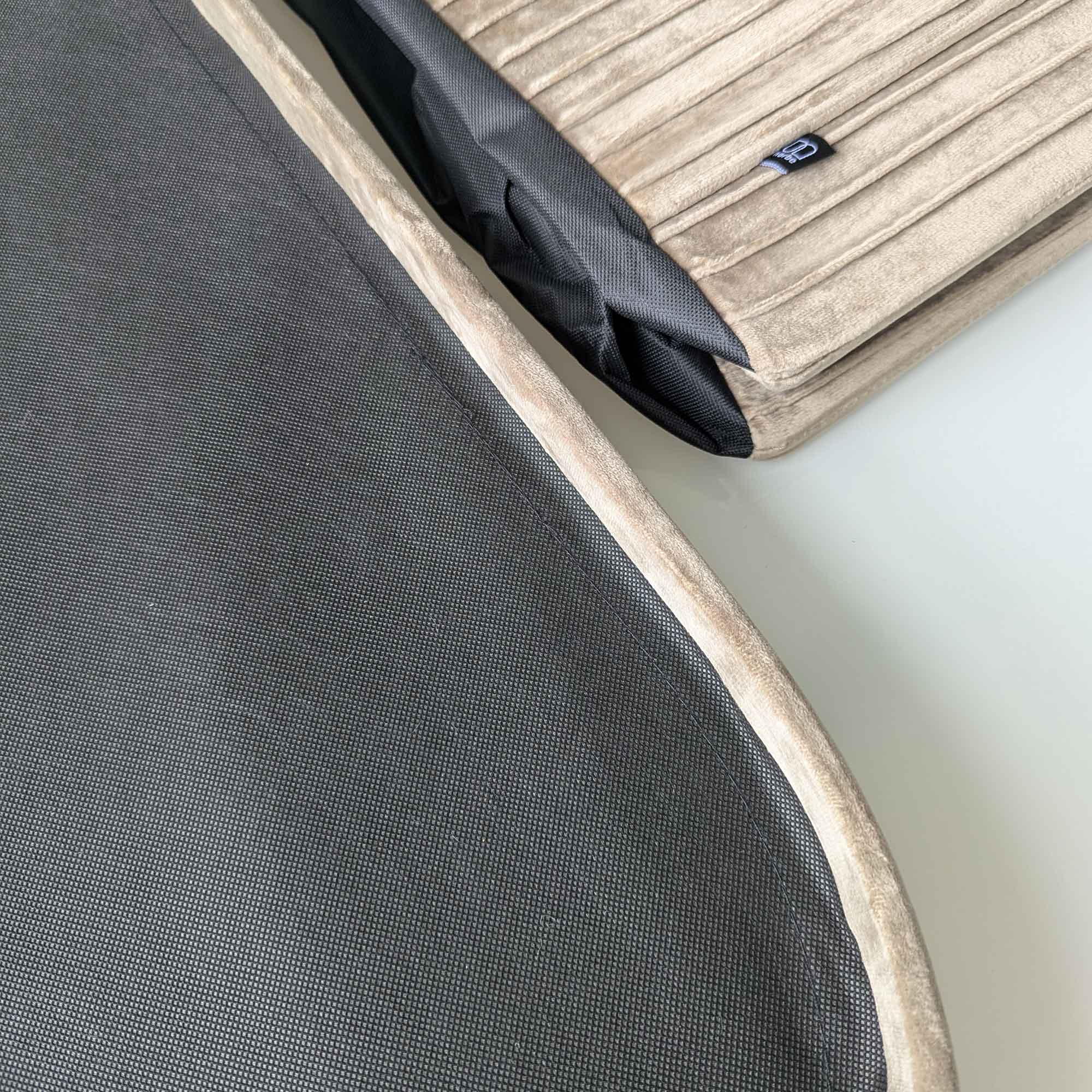 Pouf contenitore imbottito in velluto color tortora
