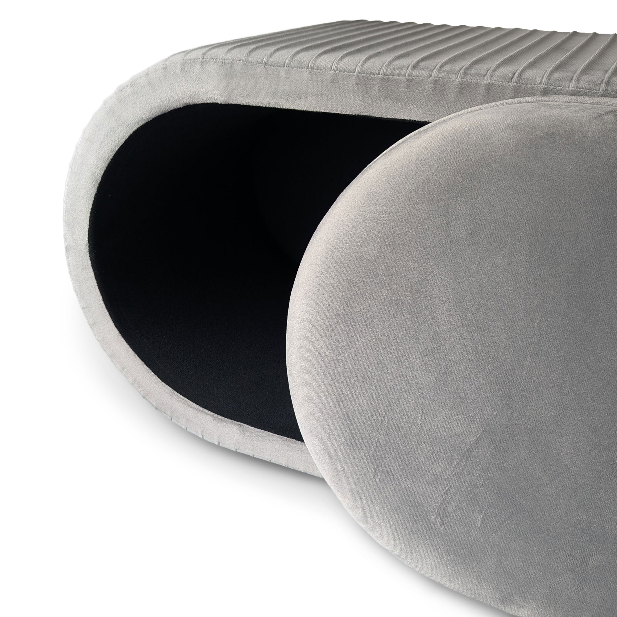 Indispensabili per il tuo living! Questo set di pouf in morbido velluto imbottito, nei toni del crema, è la combinazione perfetta di stile e funzionalità. Il pouf contenitore, spazioso e dal design moderno, si trasforma in un comoda seduta. Accompagnato dal poggiapiedi, crea il tuo rifugio personale dove concederti una pausa. Perfetti per ogni ambiente, si adattano ad ogni stile.